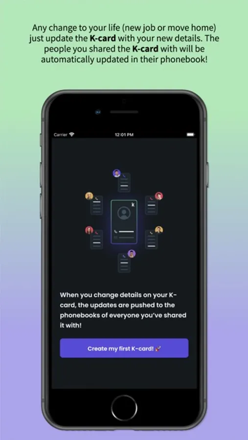 Kay is a FREE contact management app available for iPhones. Remember the pain of updating everyone when you change jobs or move home? By creating K-cards - a "live contact/business card" - and sending them to the people you know you are virtually writing your details into their phonebook without them needing to do any data entry. Also, when you change those details in Kay, those who have that K-card will get updated automatically in their phonebook. Kay is encrypted end-to-end, so your data remains private always.