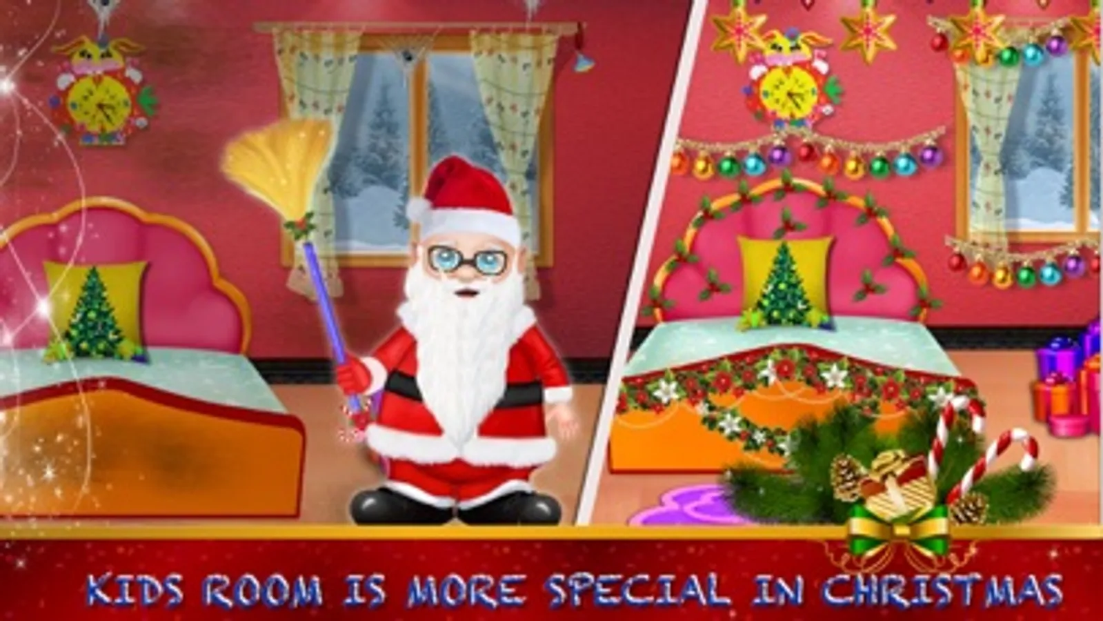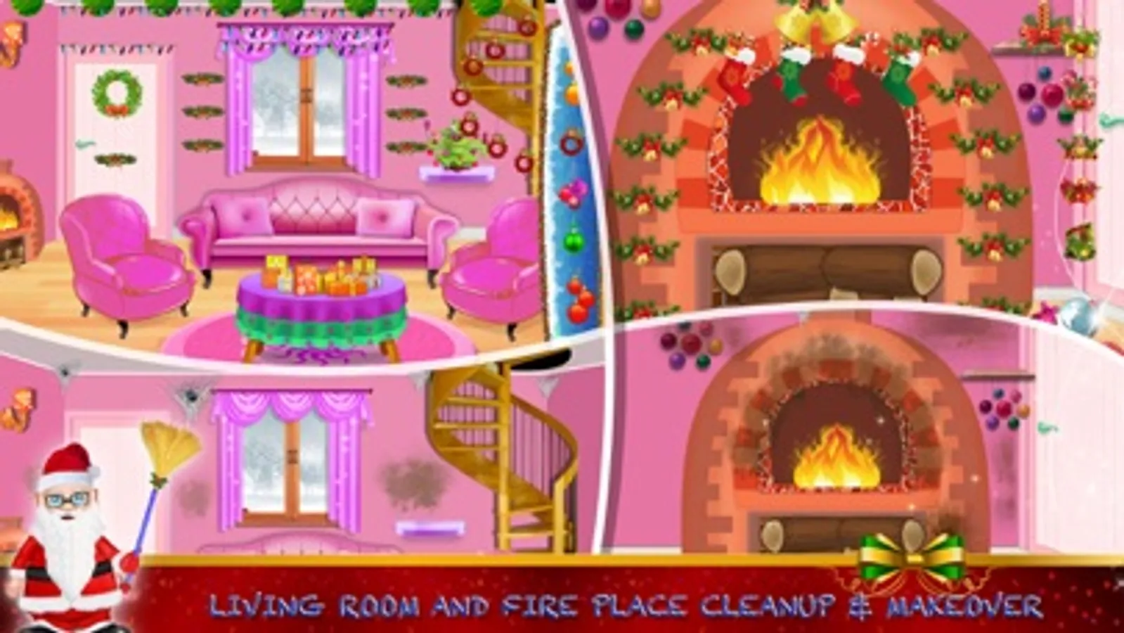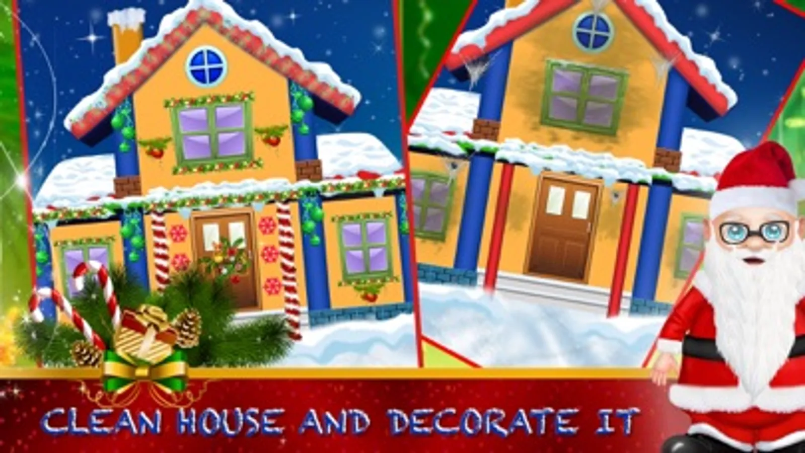 Enjoy our Christmas Game with house cleaning and decoration with Christmas decoration. Do home cleaning activity in winter and get ready for new yer celebration. Make home welcoming for Santa Claus and fun for a party and family.