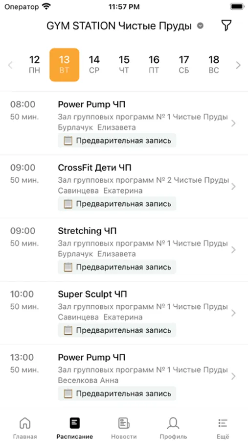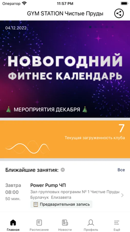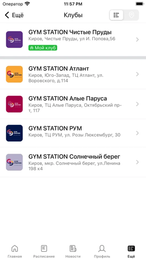 Приложение предназначено для клиентов сети фитнес клубов GYM STATION.
