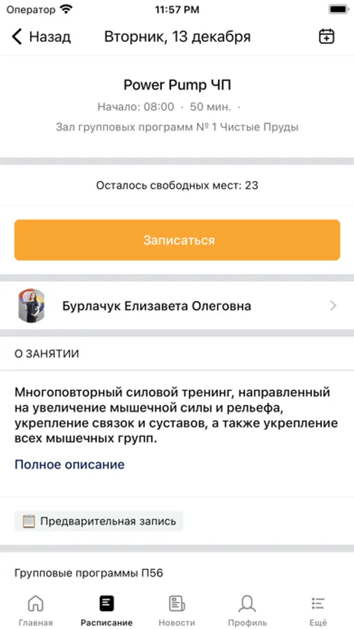 - получать оповещение о предстоящих тренировках и обо всех изменениях