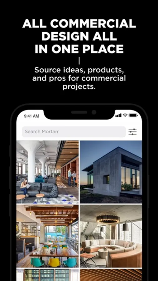 Use Mortarr to find ideas, products, and pros for commercial design projects. Browse inspiring commercial interior design project and installation photos with Product and Pro Tags. Connect with top companies in the commercial construction industry. Use Design Rooms to collaborate. Download it to get all of commercial design, all in one app.