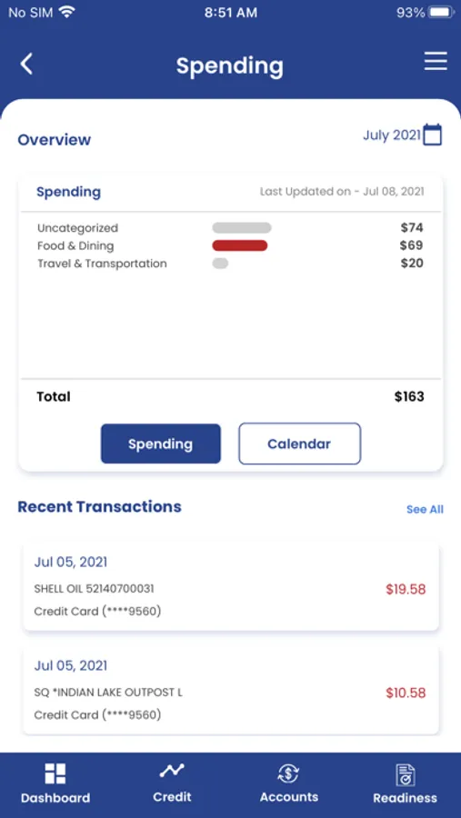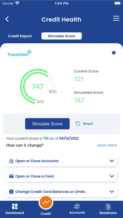 Your credit score is prominently displayed in your dashboard - and it doesn't cost you anything. Track changes month to month and learn the key factors that make up your score like length of credit, timely payment history, utilization of credit, total accounts opened and inquiries. Don't worry, this is a "soft credit pull" meaning there is no impact to your score by checking it. Look through your credit report for accuracy. Access helpful articles that explain credit bureaus, credit score, and more.