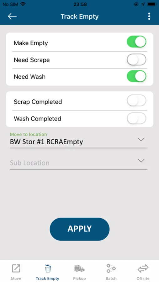 It has ability to read the QR code and process Mix Batches, Offsite Transfer and Pick up empty container
