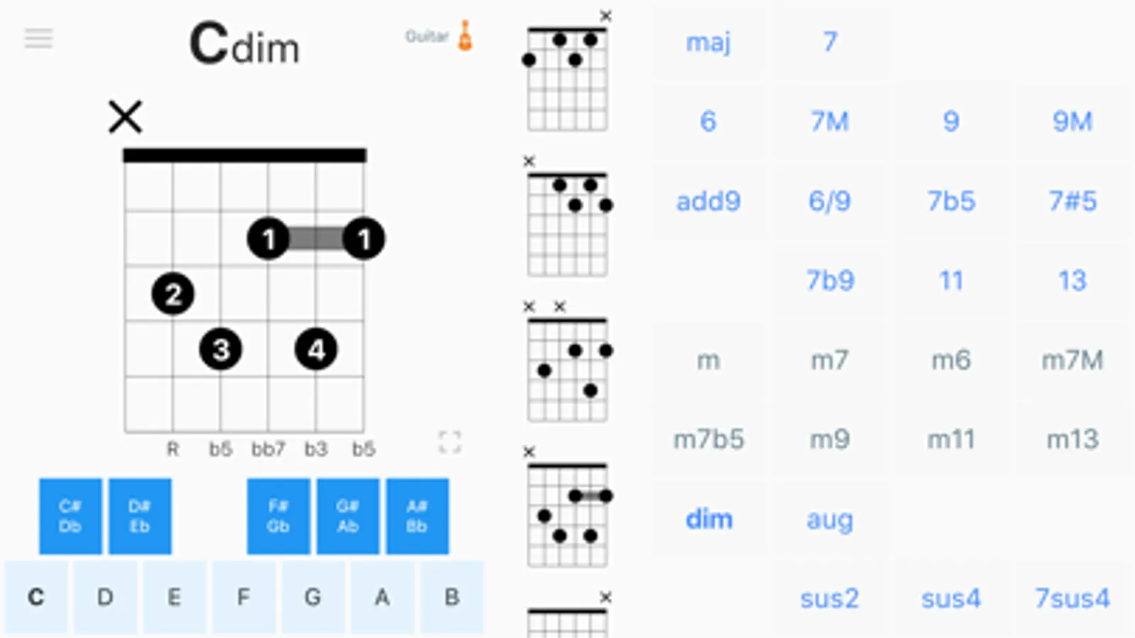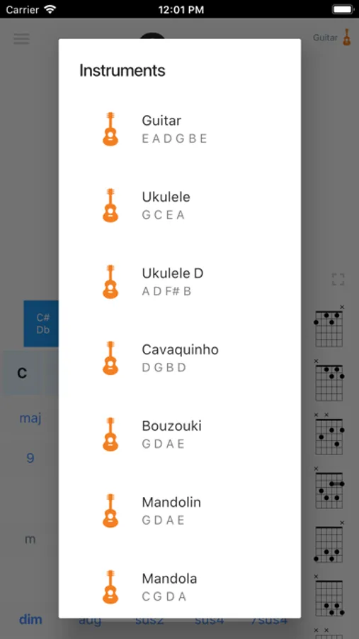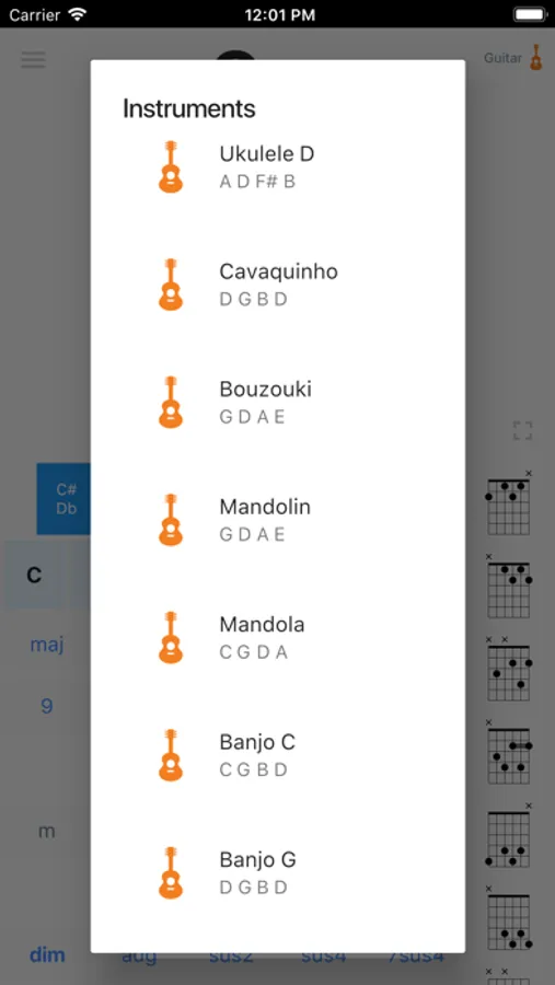 Chord dictionary for Guitar, Ukulele, Bouzouki/Mandolin, Banjo and Cavaquinho for iOS 10.0+: