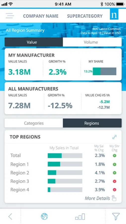 This application was built by Nielsen for GTC users. It enables greater opportunity to interact with RMS data, through mobile centric dashboard designs and allows push notifications/alerts.