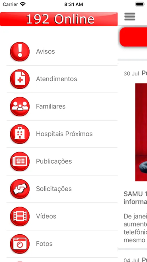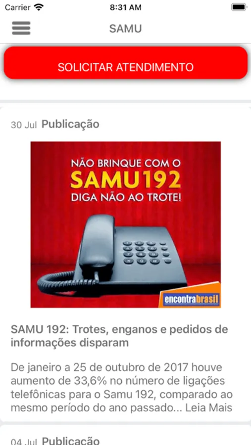 Aplicativo oficial do SAMU 192 para abrir chamados de forma imediata