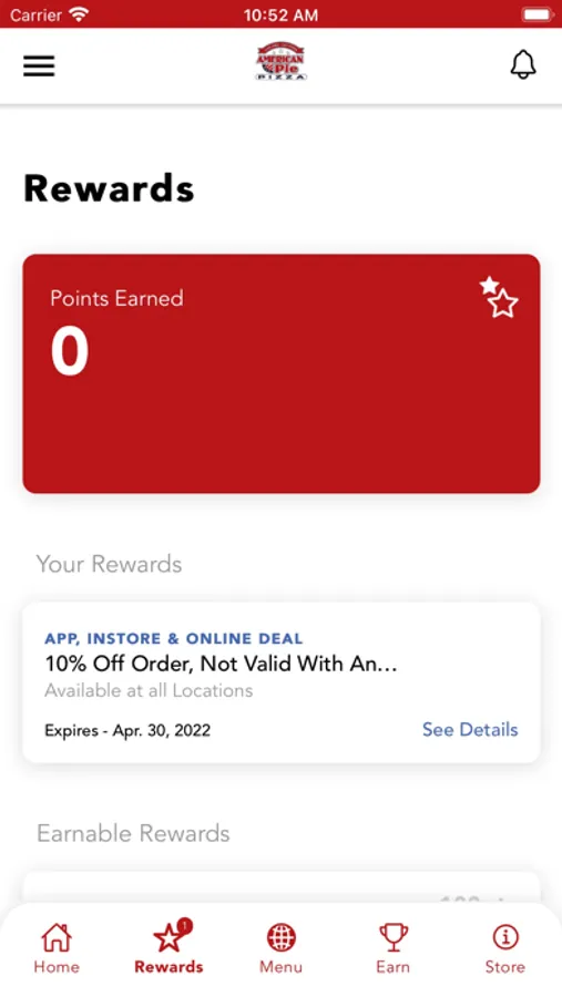 American Pie Pizza Rewards App: Check-in with the app at the in-store tablet, check your rewards and more!