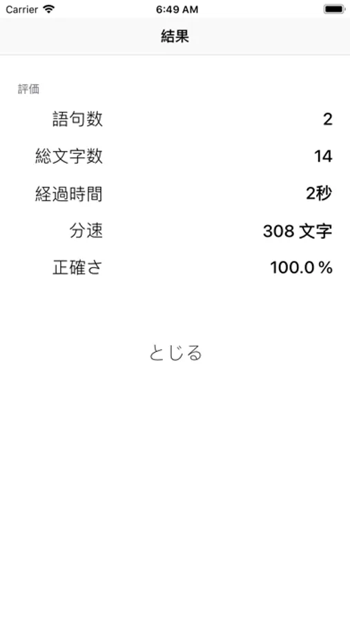 タイピング完了後の結果画面でとじるボタンを押すと、すぐに次のタイピング画面になるため、