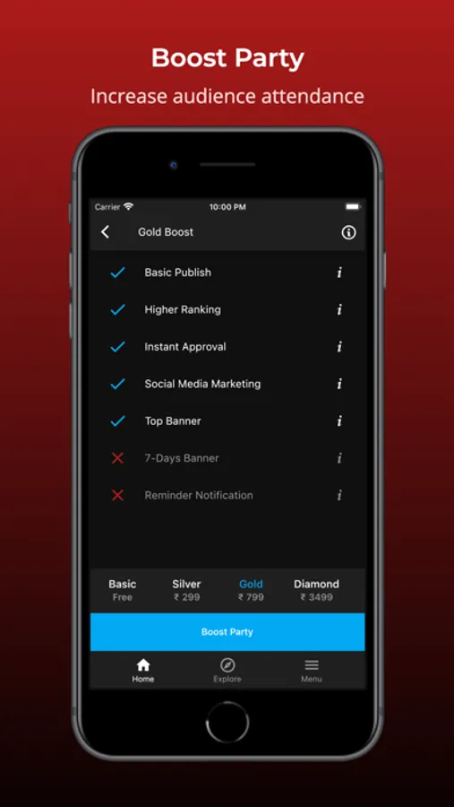 Reward System: Party Hunt rewards you for promoting events, sharing experiences, and connecting with others. Earn points by sharing events, posting content, and inviting friends to join the app. Redeem your points for exclusive rewards, such as VIP access and ticket discounts.