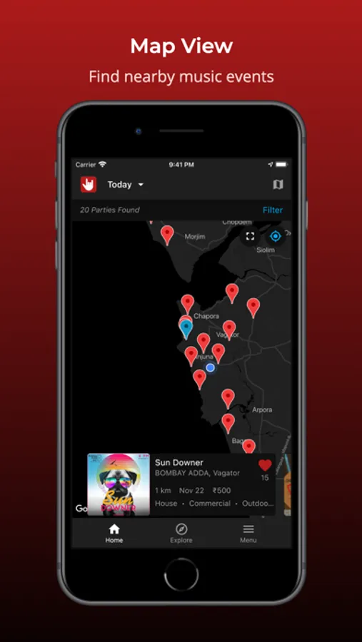 Event Discovery: Easily search for music events based on location, date, genre, and more. Our interactive map conveniently displays event locations and distances from your current position, making it easy to plan your night in Goa, Bangalore, Pune, and Himachal.