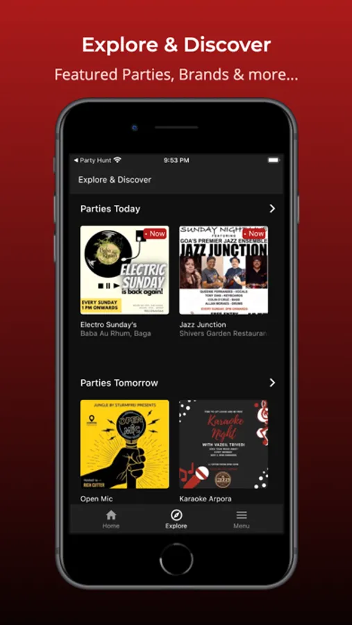 Party Hunt is your ultimate companion for discovering, promoting, and connecting with the music scene in Goa, Bangalore, Pune, and Himachal. Experience the best of their vibrant nightlife, whether you're a local or a tourist. Join the party today and dive into India's vibrant music scene! Download Party Hunt now.