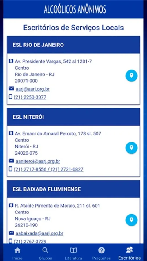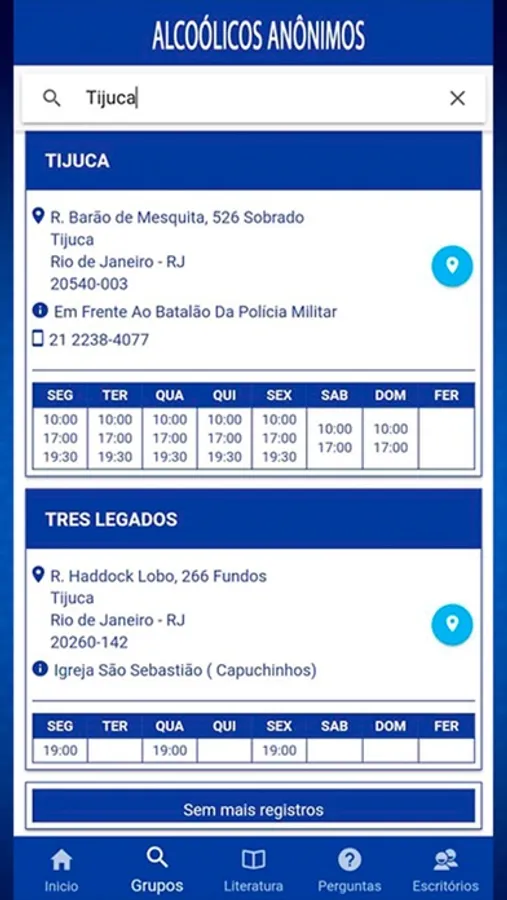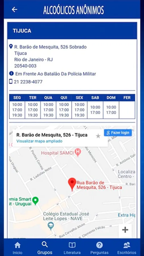 Aqui você vai encontrar as informações sobre Alcoólicos Anônimos RJ: Endereços, Mapa de Localização, Horários de Reuniões dos Grupos de Alcoólicos Anônimos e Literatura.