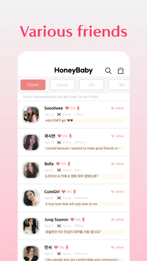 Also, you can talk with over 140 international members around the world in HoneyBaby.
