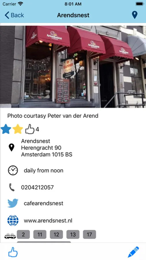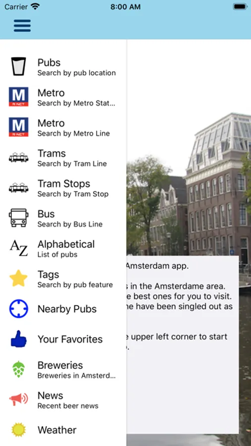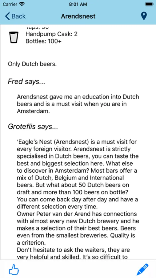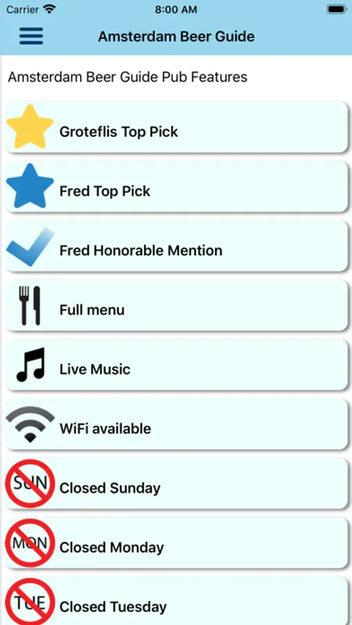 Each entry contains a review, photograph, nearest public transportation, contact info, website and twitter handle for each pub. Check the pub's twitter feed for news without leaving the app. A map will show the location of the pub as well as nearby listed pubs.