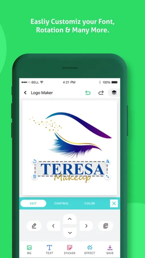 Logo Maker also provides professional photo editing and text editing tools like: Flip, Rotate, 3D Rotate, Resize, Curve, Font , Color, Hue and lots more that you'll need to create beautiful original logos.
