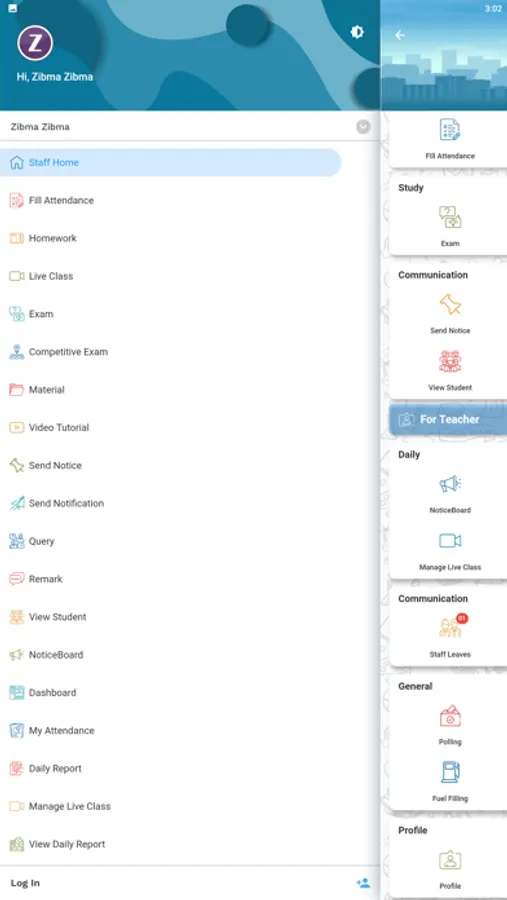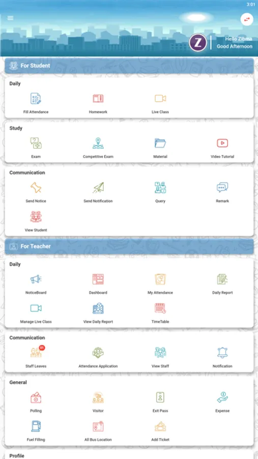 Staff can Fill Attendance, Set Homework,. View Own Attendance, Manage Queries and many more things.