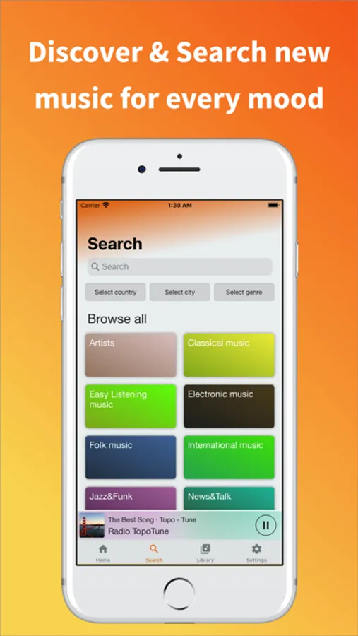 • Thousands of live radio stations in your pocket, tune in to unlimited music playlists for any activity or mood. All in one app! The TopoTune app is available for iPhone and iPad for FREE. No Ads!