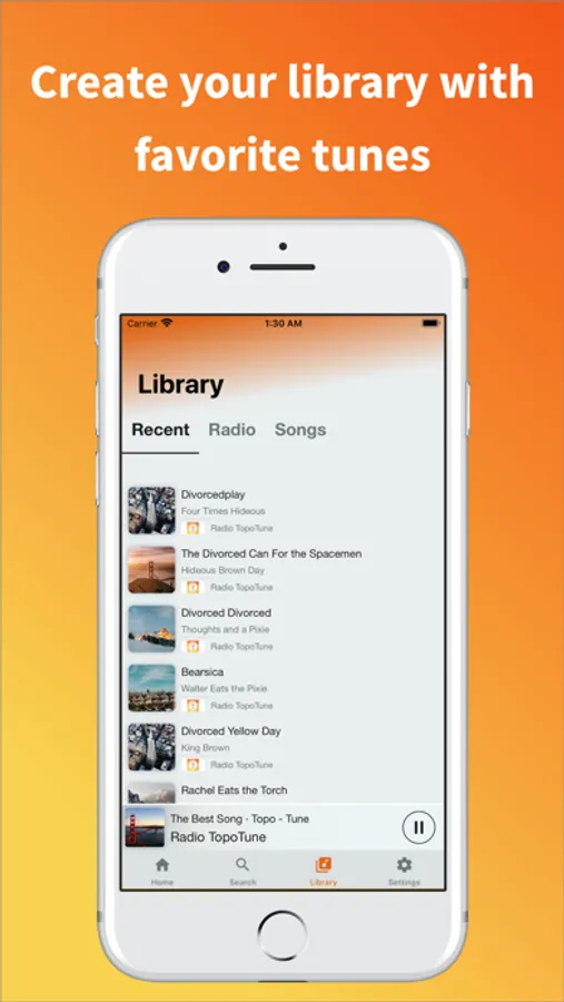 • You can favorite radio stations as well as the current song, those will be added to your library. In the library, you will find favorite songs and radio stations, as well as recently played songs.