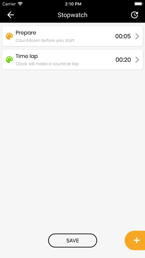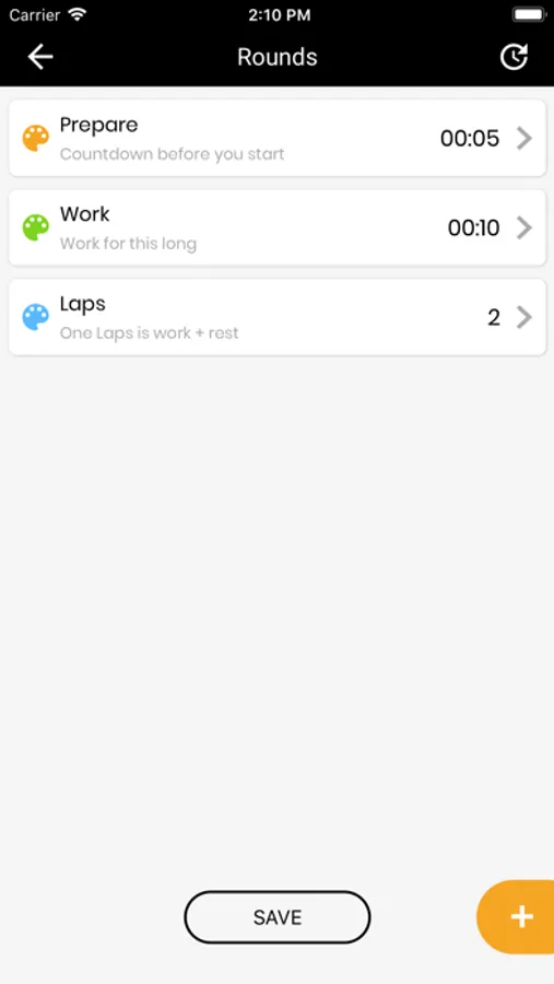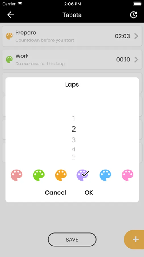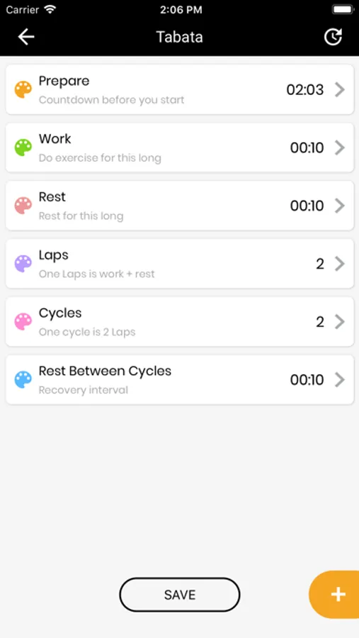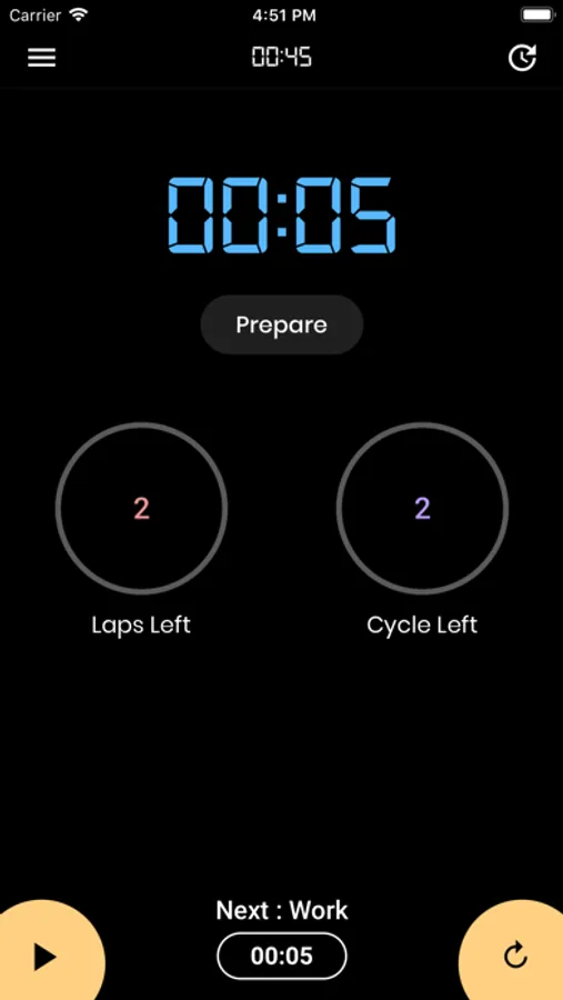 • Customize Work time, Rest time, Round (Lap), Cycle