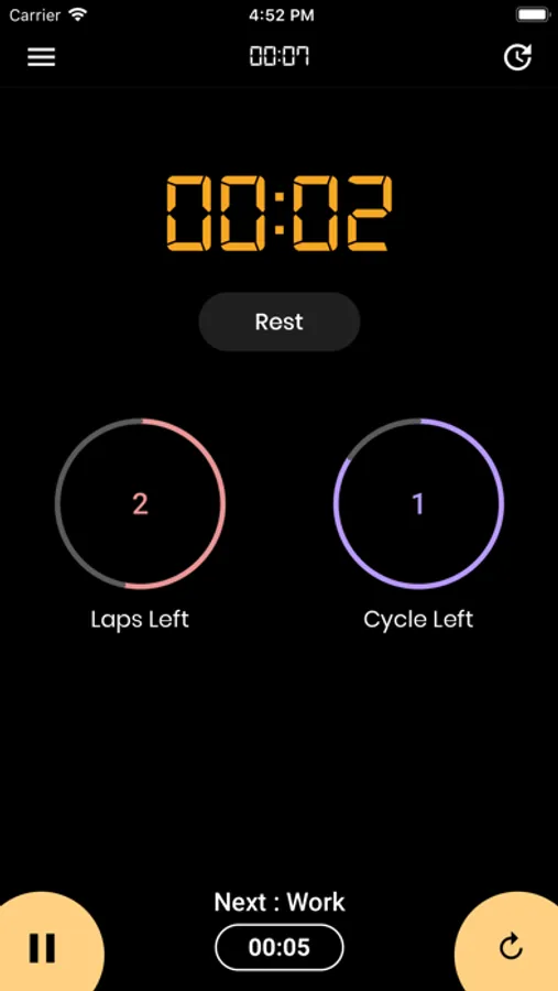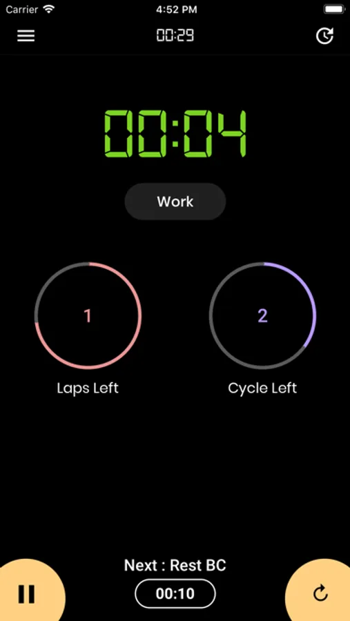• Reset your workout at at time if you were interrupted and want to start from the beginning.