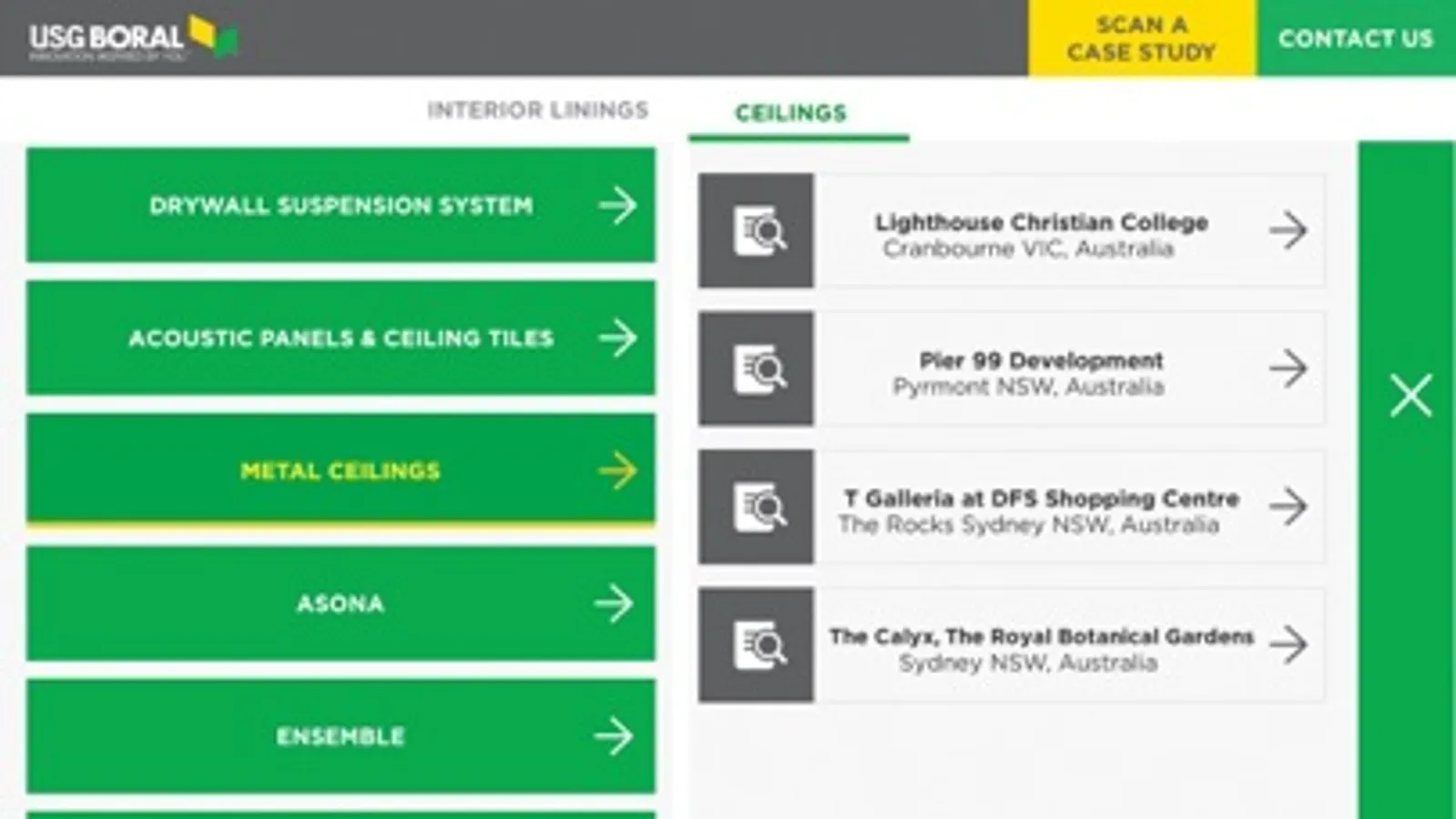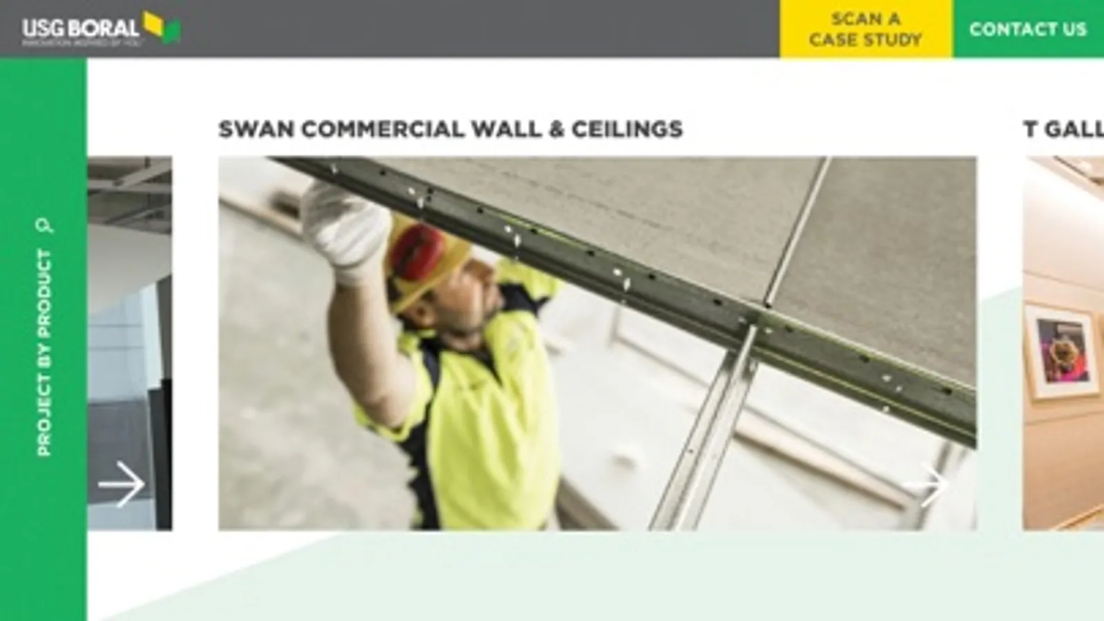 Using the print AR technology or ‘projects by product’ menu users can select a USG Boral wall or ceiling product and view its application on actual building projects in Australia & NZ through a variety of digital assets, including video testimonials, virtual tours and images.