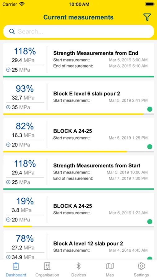 It shows compressive strength development of young concrete on pc, laptop, tablet and mobile phone anywhere in the world in real time. It therefore measures concrete temperature onsite and uses the weighted maturity method, as developed by de Vree, to provide reliable, standards-compliant information. This provides steering information for decision making before and during the construction process.