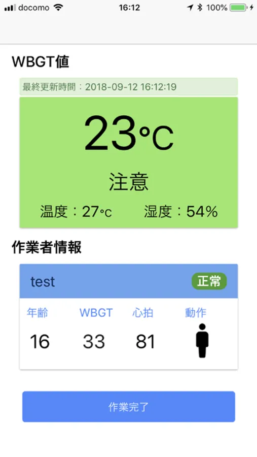 WBGT値から、作業中の体調の変化をリアルタイムに監視します。