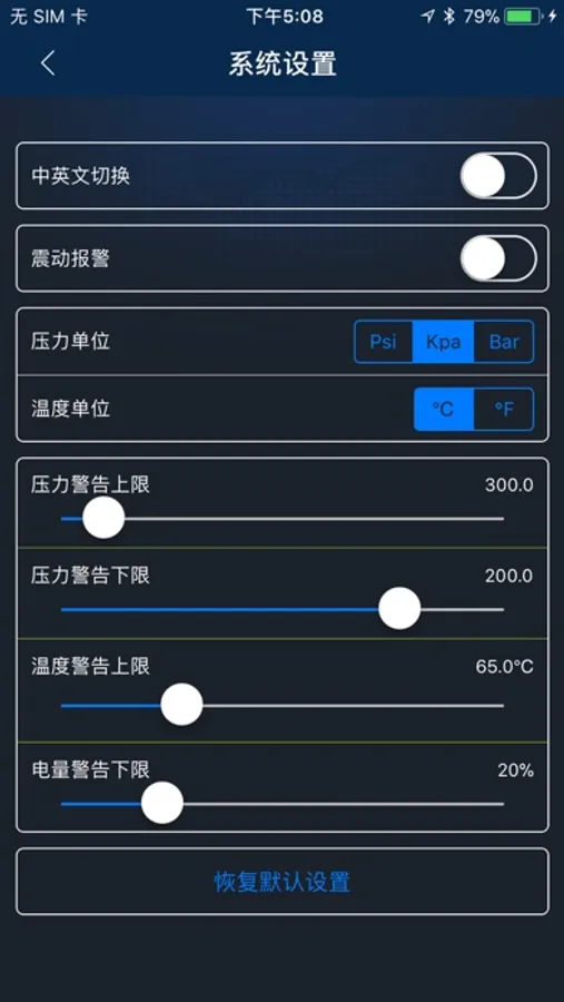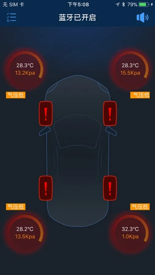 "TMPSII" is a car tire pressure detection system application software designed for smartphones. It is suitable for smartphones with Bluetooth 4.0 version. It cooperates with the Bluetooth sensor installed on the car to receive the pressure, temperature, and air leakage of the four tires. The tire pressure and temperature data are monitored in real time when the car is driving. When the data is abnormal, the "smart tire pressure" can be alerted in time to ensure driving safety.