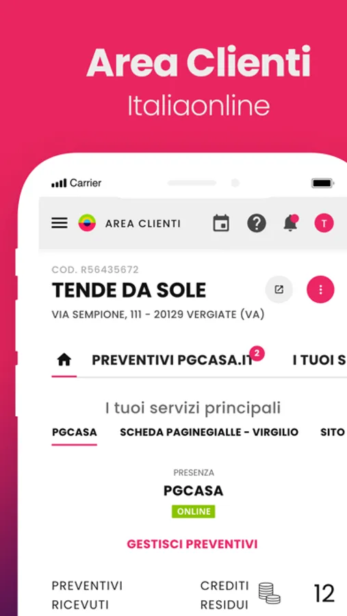 Italiaonline è l’app dedicata ai clienti di Italiaonline. Permette di accedere alla propria area clienti e gestire il proprio piano di comunicazione in pochi clic: