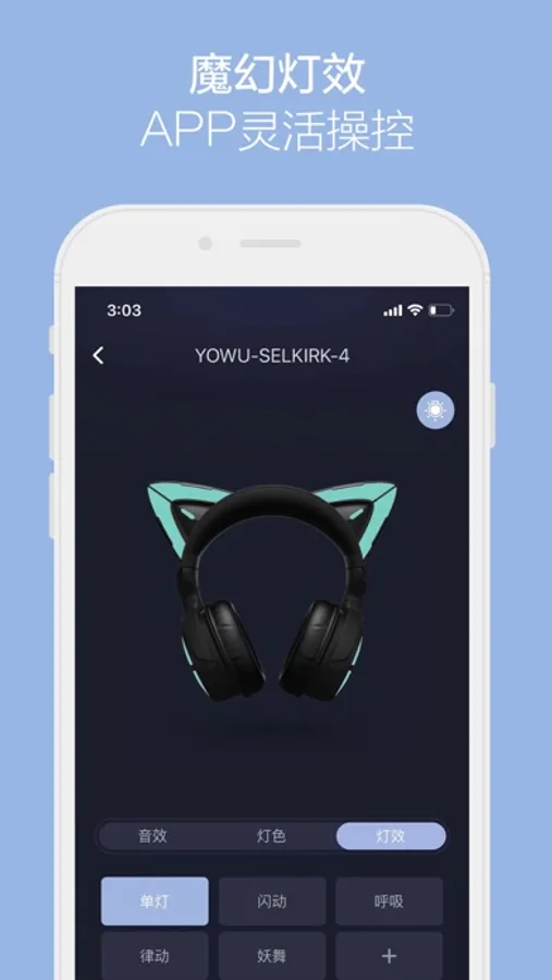 【耳机控制】您可以通过连接YOWU耳机,控制耳机灯光、音效等。