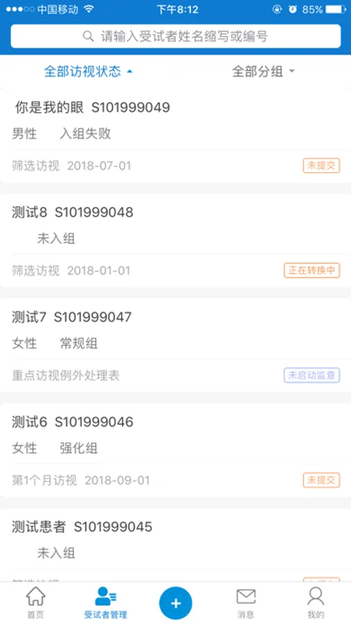 有多个访视的状态与分组筛选,让您更加随意方便的查看对应的患者信息