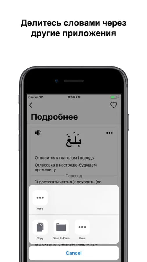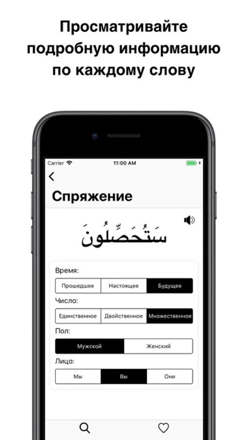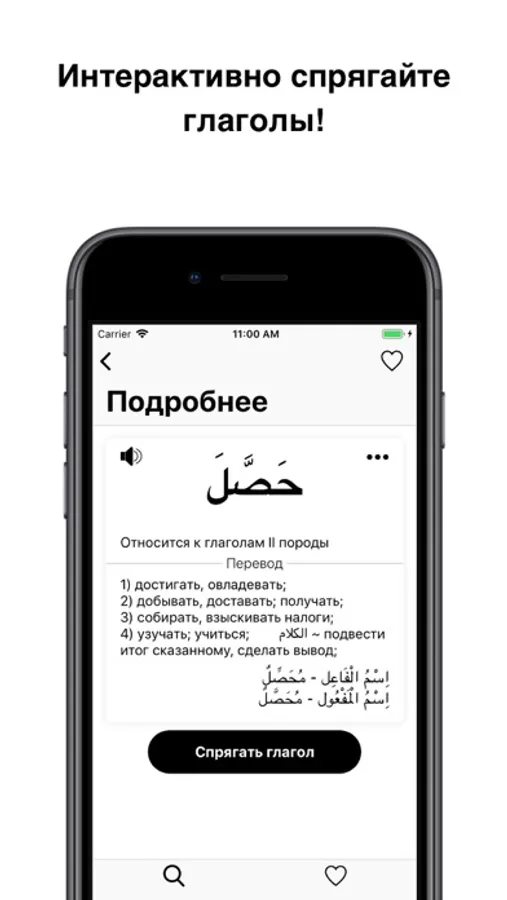 Также слова можно спрягать, прослушивать и добавлять в избранное.