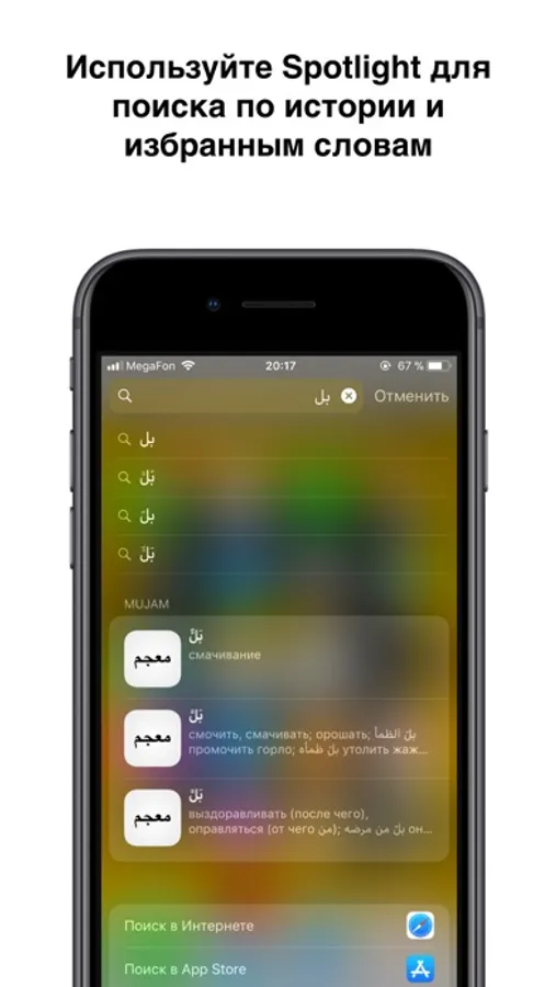Словарь работает оффлайн, все 40000 слов находятся у вас в телефоне, но при вводе слова не в его нормальной форме словарь постарается его преобразовать (лемматизация), если вы ему это разрешите на экране "Настройки"!
