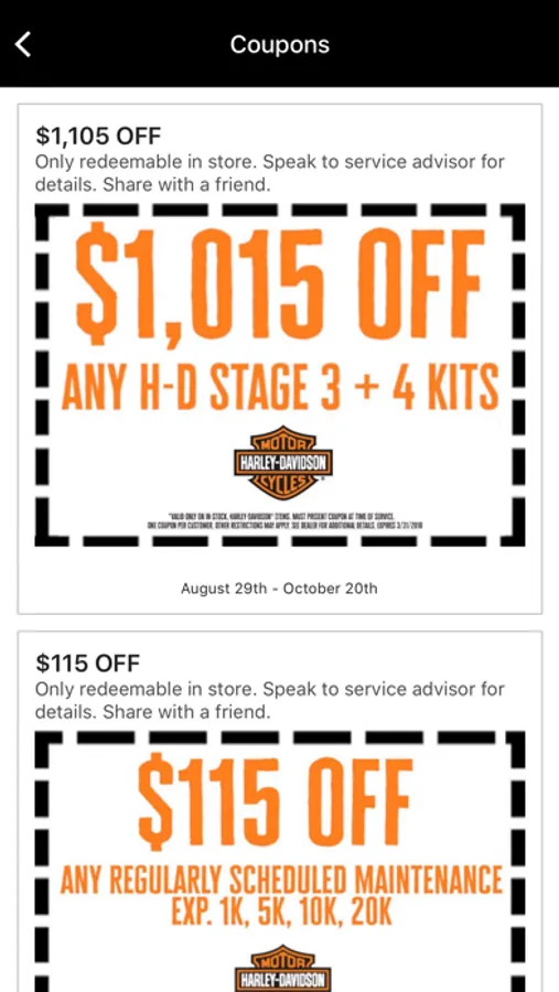 Harley-Davidson of Dothan dealership loyalty app provides customers with an enhanced user experience. The mobile dealership app provide customers with relevant specials and loyalty offers. Key features include: