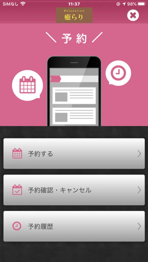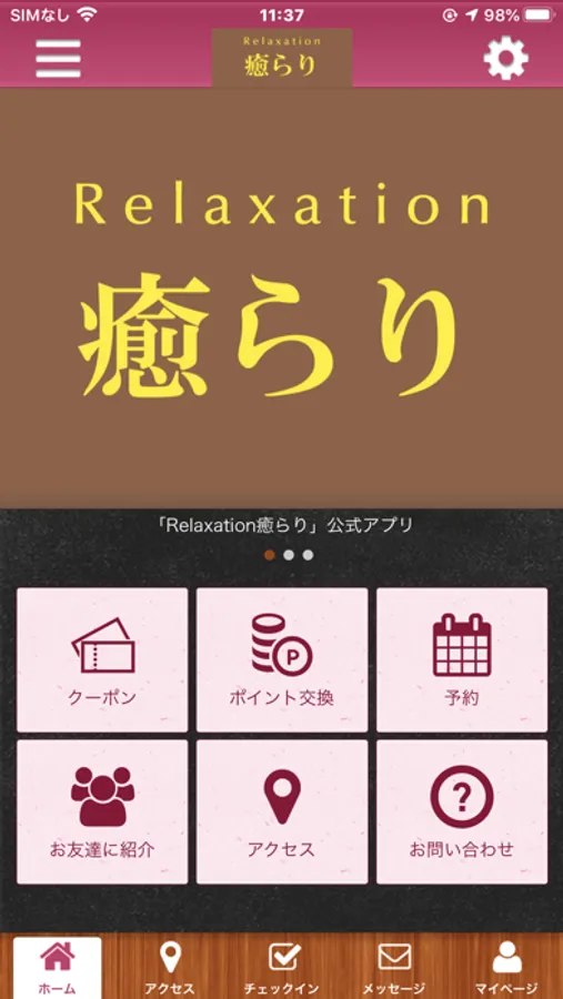 このアプリでは、癒らりの最新情報の受け取りや便利な機能を使う事ができます。