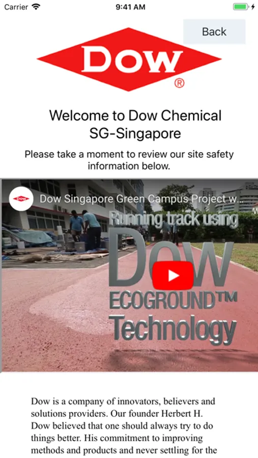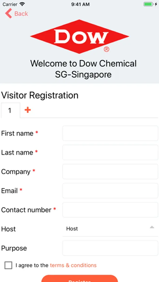 Dow combines the power of science and technology to passionately innovate what is essential to human progress. The Company is driving innovations that extract value from material, polymer, chemical and biological science to help address many of the world's most challenging problems, such as the need for fresh food, safer and more sustainable transportation, clean water, energy efficiency, more durable infrastructure, and increasing agricultural productivity. This application is created with purpose help customers can go to visit our company easier. Visitors can pre-register or go to lobby our company fill out register form. after that visitor can go visit arround factory or make an appointment to meet someone. You need to check in when you go to our company and check out when you leave that