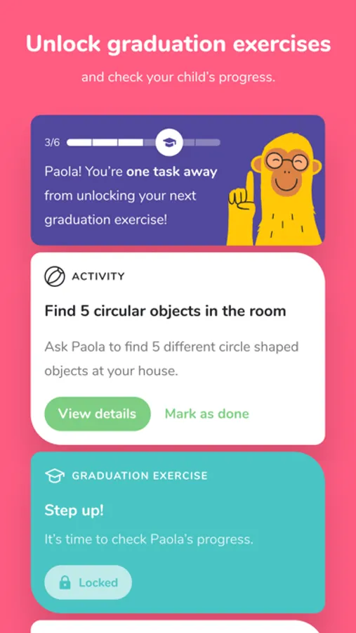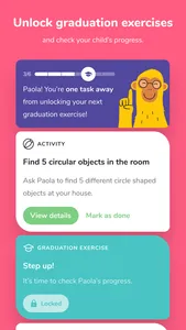 3. Unlock graduation exercises: Kidappolis will recommend an age-appropriate playlist of customized apps, short videos, and offline activities for you and your learner to engage with.