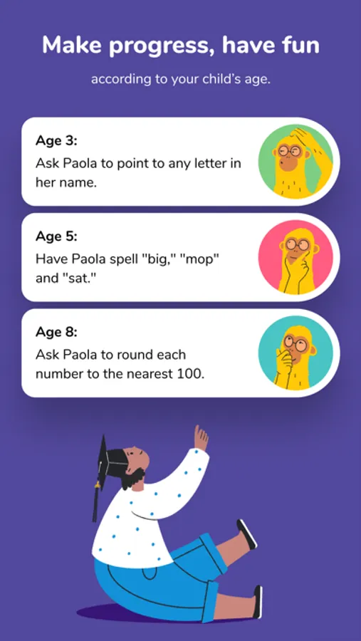 4. Make progress and have fun: Check in regularly on kidappolis to see how your child is progressing, and to get new recommendations.