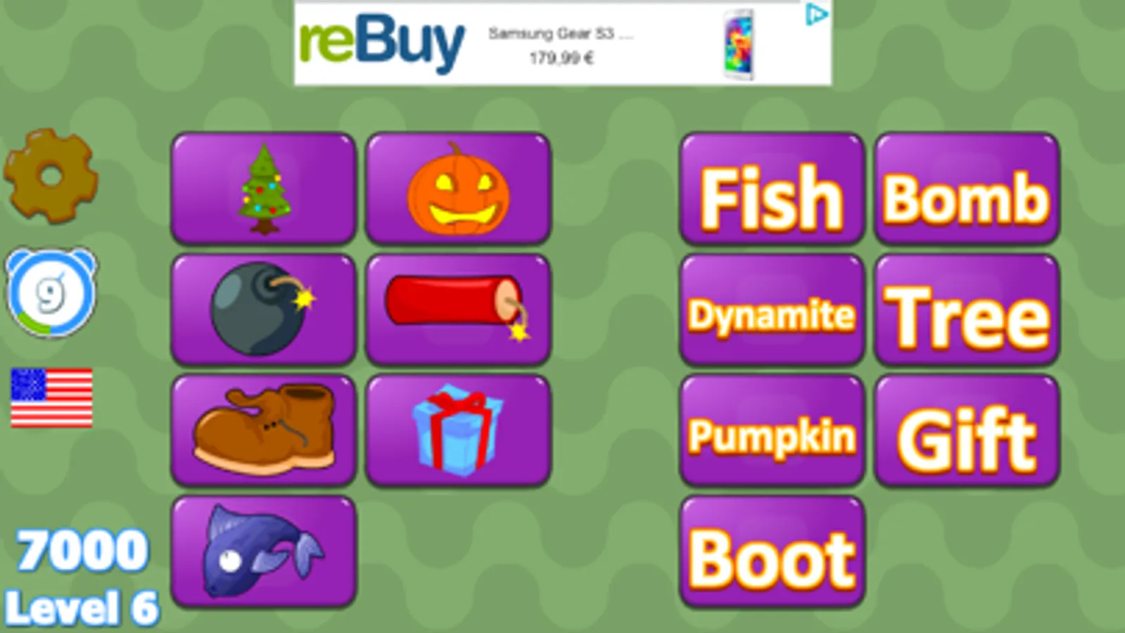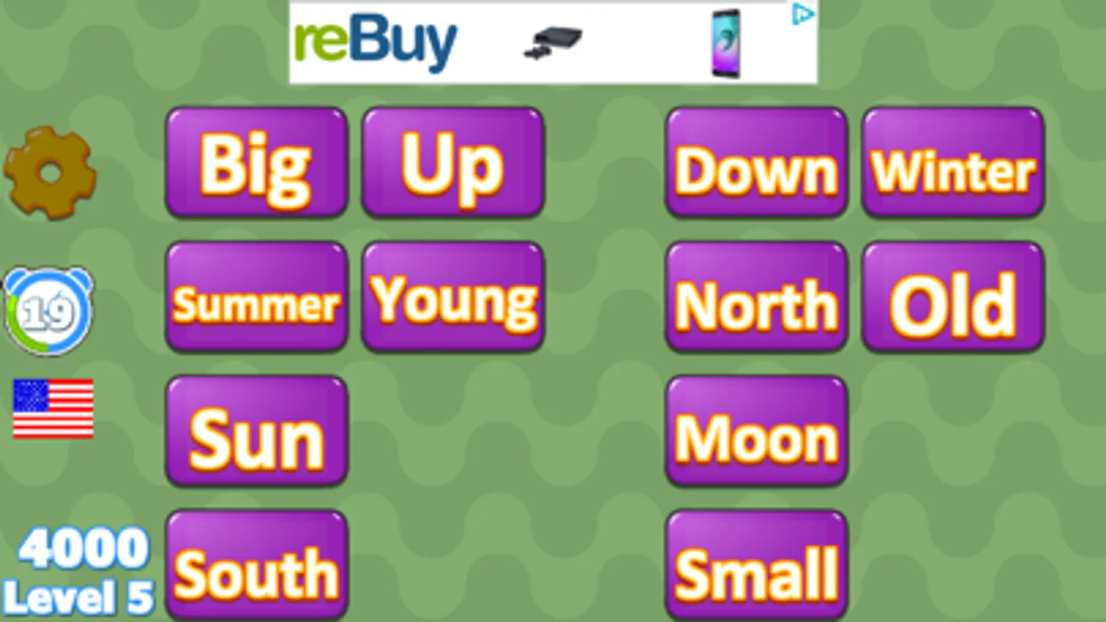 The goal of the first game is to find a matching pair between the picture of an object and its name. You can start clicking from any side. The goal of the second game is to find a pair of opposite words. You can start clicking from any side, as well. The goal of the third game is like the first game but the name is no more displayed. You should find a corresponding picture by hearing the voice from one of the speakers at the right side. By clicking on a flag at the left, you can pass from one language to another. Finally, a slider at the bottom-left corner allows controlling the time limit of the game.