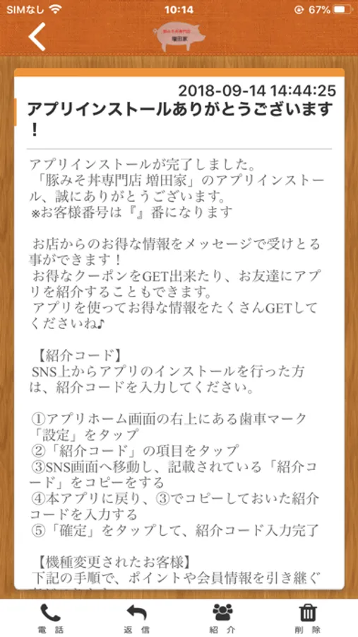 増田家のアプリをSNSを通じてお友達に紹介する事ができます。