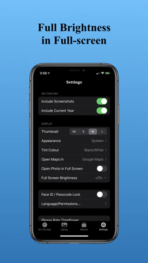 Option to increase brightness in full-screen: Increase the brightness when a photo opened in full screen, so you can see it with more detail and colors, and when you exit the full-screen mode, the display return to the normal brightness. Convenience to show off your photos to others nearby.