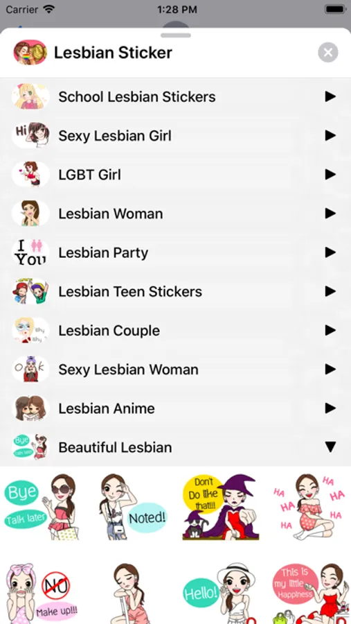 • Use stickers in chat—Tap to send, or touch and hold to put stickers on top of a bubble, other stickers, photos, and videos.