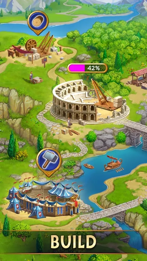 This game is a unique and epic combination of city building and match-3, tied together with a storyline full of twists and turns, Mediterranean culture, and an atmospheric and vibrant setting of Ancient Rome. You’ve been named the prefect of a troubled settlement in a distant corner of the Roman Empire. Help the determined residents revive their community after a disastrous betrayal by your scheming predecessor, Cassius. Reconstruct an impressive settlement that’s worthy of legends, thwart Cassius’ evil machinations and ensure that fortune favors your citizens once again!