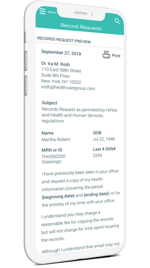 Record Request - With just a couple taps you can send an email direct to your physicians to request copies of your health records to be stored in your Hive.