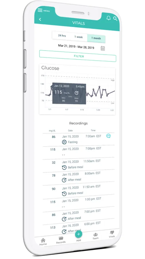 Vitals Tracking - Are you responsible for keeping track of your blood sugar, heart rate, weight or blood pressure? Avoid those awkward gaps in your information by easily tracking them through HealthHive.