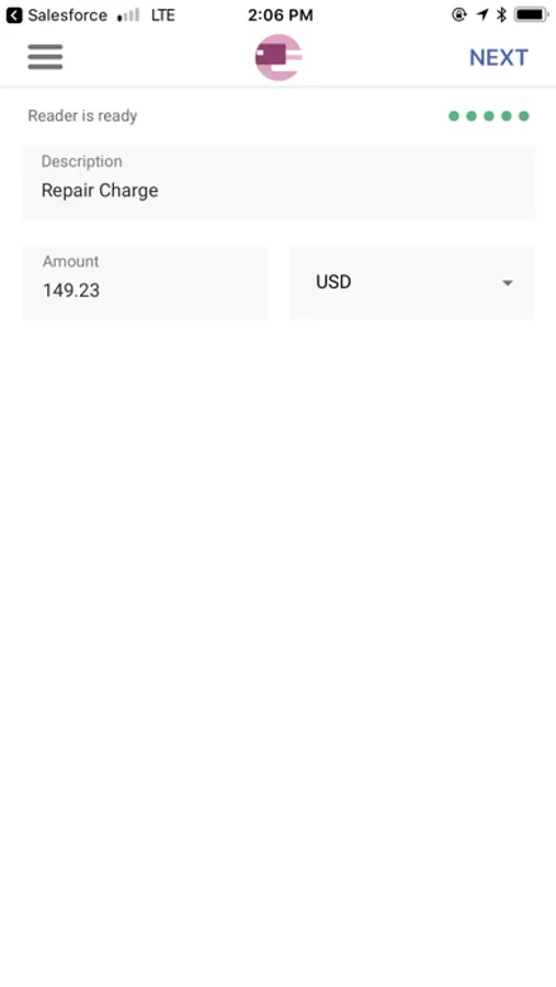 + Input your payment amount and payment description. Select your currency, preferred gateway, and the related Salesforce account and contact.