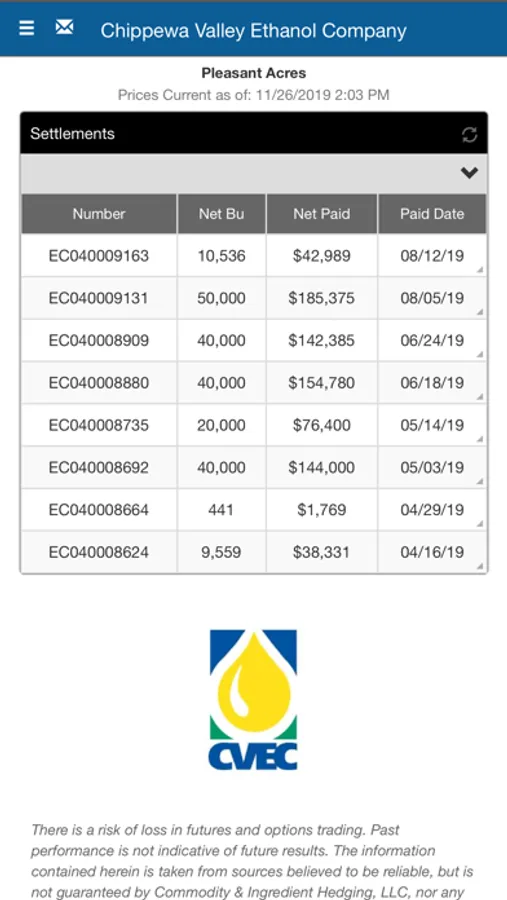 Track your scale tickets, contracts, and settlements plus monitor markets and cash bids right from your mobile device. Available for growers to download and use at Chippewa Valley Ethanol Co.