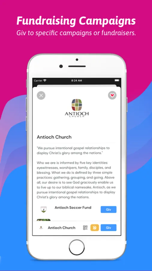 Giving should be easy and rewarding. GivApp let’s you giv to multiple organizations from one app. We also offer multiple ways to giv to each organization: One-time, Recurring, spare change and micro givs. GivApp offers Apple Pay to approved organizations. Users can also track donations, generate reports for taxes and get updates on how their gifts are making an impact. Giv to your church and favorite Christian nonprofits all in one place. GivApp proudly partners exclusively with Christian organizations.