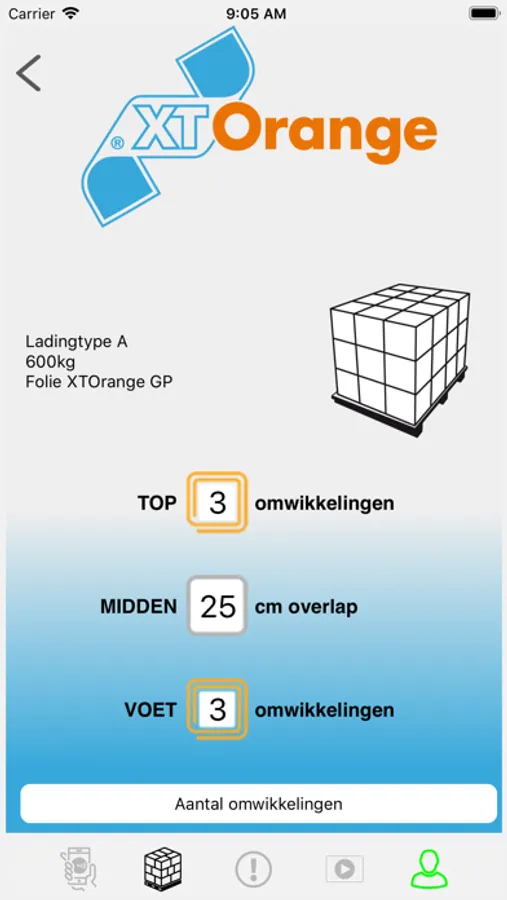 In de XTOrange® app geef je het gewicht en configuratie van je pallet in. Op basis hiervan wordt een advies berekend hoe je de pallet goed kunt stabiliseren.