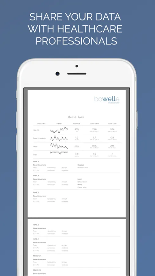 Bowelle is designed to be the quickest, most easy-to-use food & symptom diary on the App Store. Beautiful visual representations make it easier to discover patterns and determine how you feel over longer periods of time.